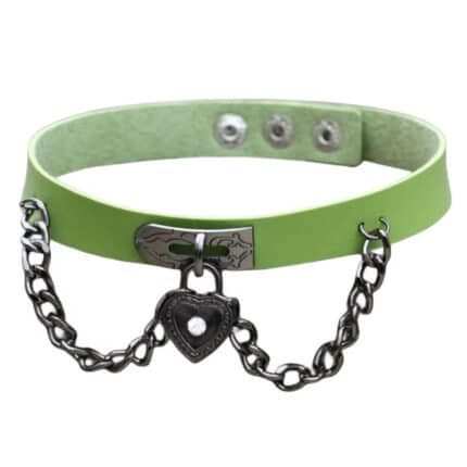 Wholesale Punk Metal Chain Choker – New PU Leather Collar with Peach Heart Love Lock Pendant