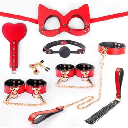 8-Piece BDSM Bondage Kit ā New Handcuffs, Whip & Slave Accessories for Erotic Roleplay