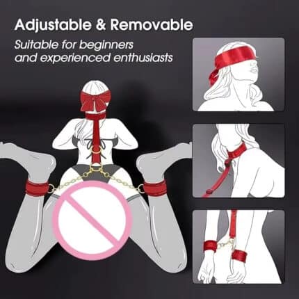 Adjustable Sex Bondage Kit ā New Handcuffs & Neck Restraint SM Bandage Set for Couples