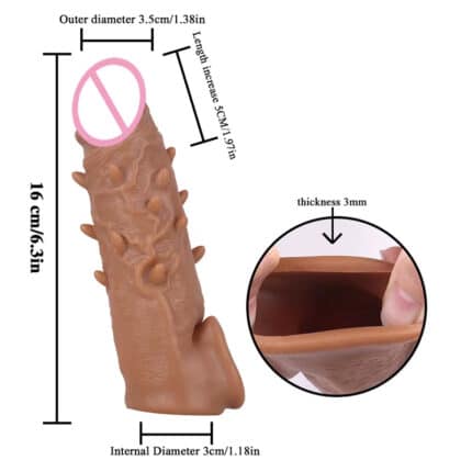 High Quality Reusable Realistic Dildo Sleeve Silicone Ejaculation Delay Long Wearable Sleeve Condom Penis Enlargement Toy for Men