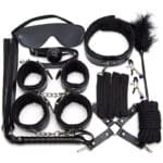 | Included Items | Handcuffs, Legcuffs, Collar, Whip, Rope, Blindfold, Ball Gag, Nipple Clamps, Tickler, Storage Bag |