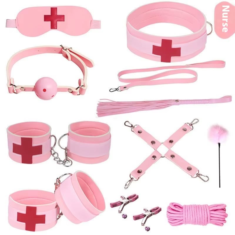 BDSM Restraint Toys Hot Sexy Nurse Bondage Kit with Harness Handcuffs and Collar Erotic for Couples