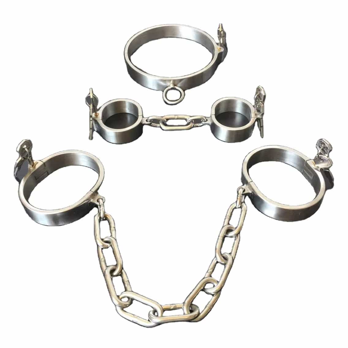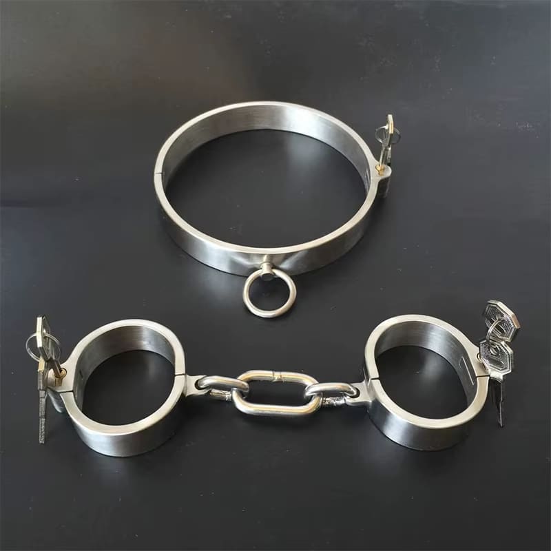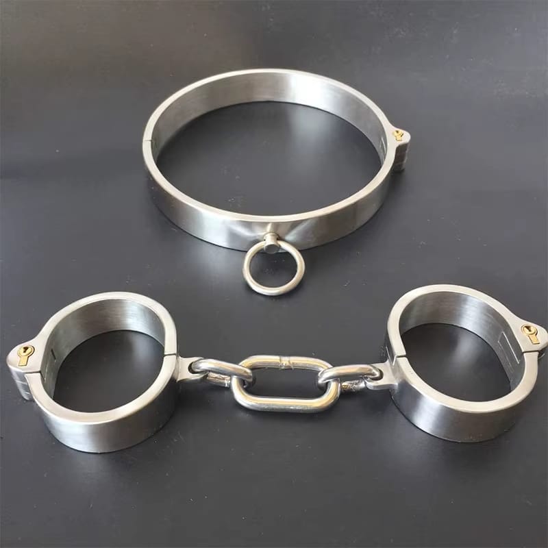 Complete Metal Restraint Set – Includes a sturdy neck collar with matching handcuffs