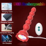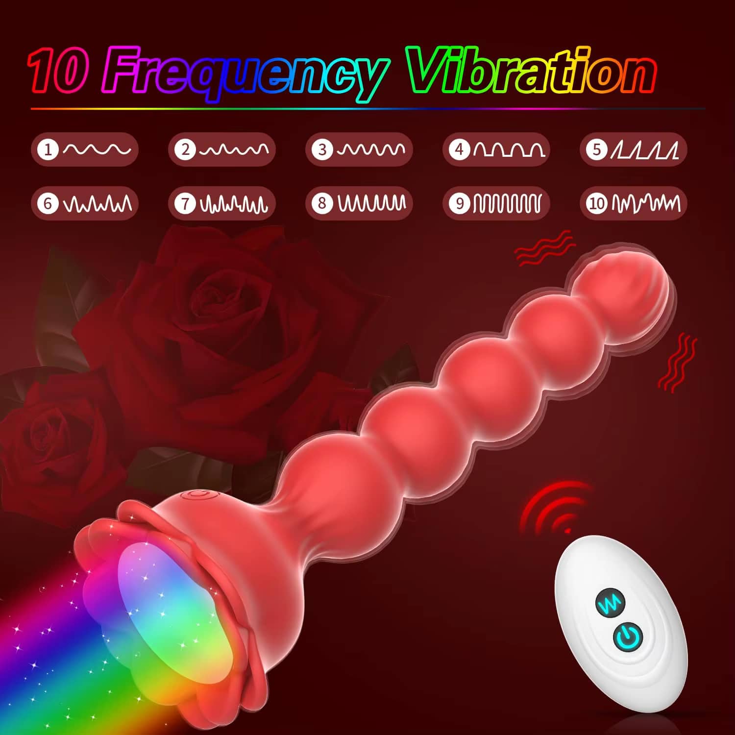 Remote Control Prostate Massager – Rose Anal Toy Vibrating Butt Plug Beads Vibrator with Light-Up Base for Men