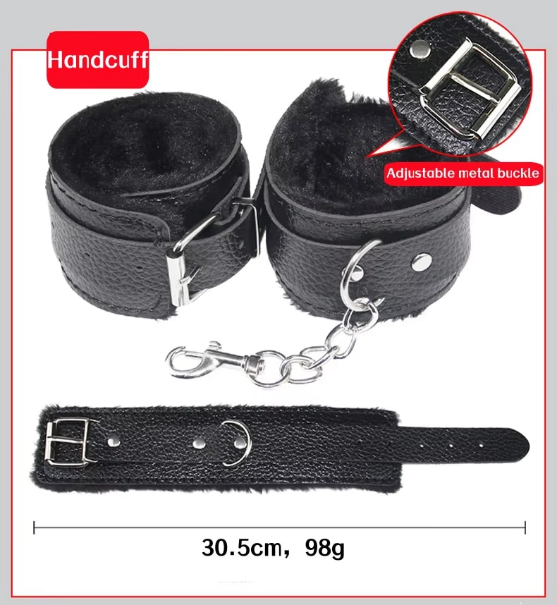 | Included Items | Handcuffs, ankle cuffs, collar, leash, blindfold, whip, and connecting chain |