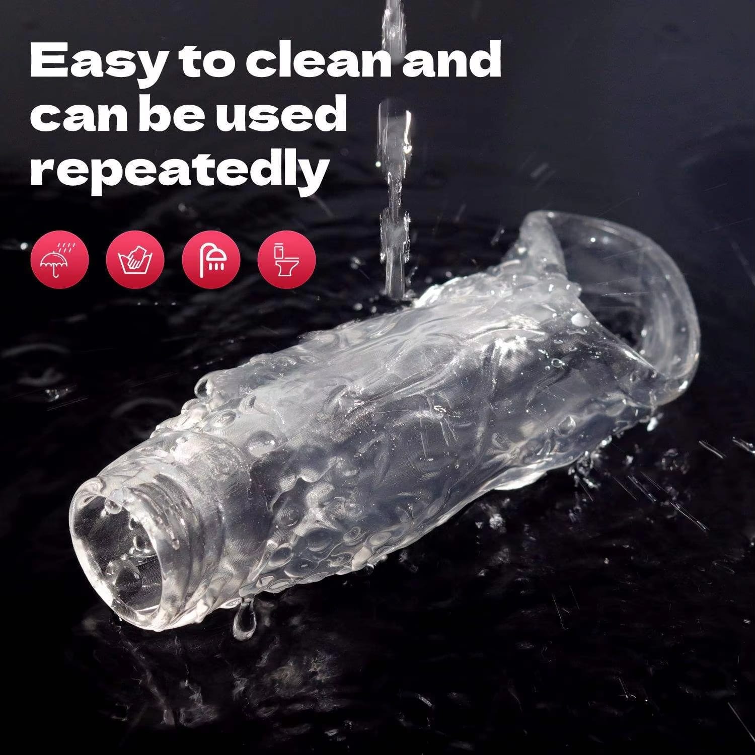 Crafted from premium stretchable TPE/Silicone, this penis sleeve offers a comfortable fit, enhancing both length and girth while stimulating your partner with realistic textures. Unlike disposable condoms, this reusable adult sex toy is washable, durable, and designed for multiple uses.