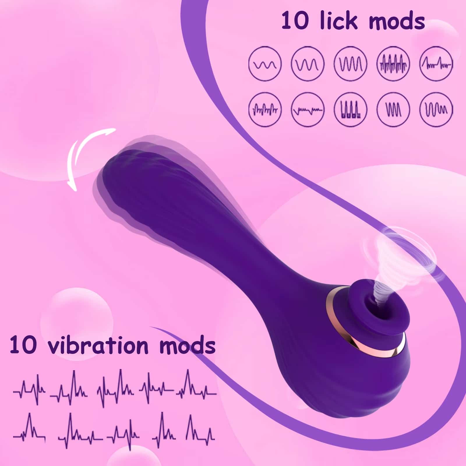 The Handheld Purple Sucking Vibrator is designed to deliver dual stimulation with powerful 10 vibration modes and 10 suction intensities. Perfect for both G-spot and clitoral play, this elegant and compact vibrator allows women to explore endless pleasure combinations.