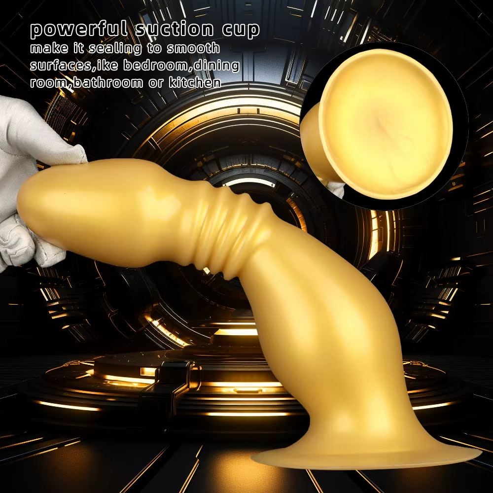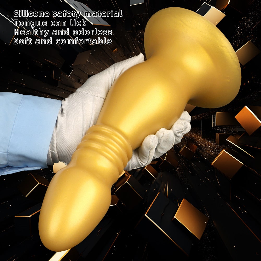 Extra Large Head Golden Silicone Anal Butt Plug – Soft Suction Cup, Fetish Sex Toy, Male Anal Training