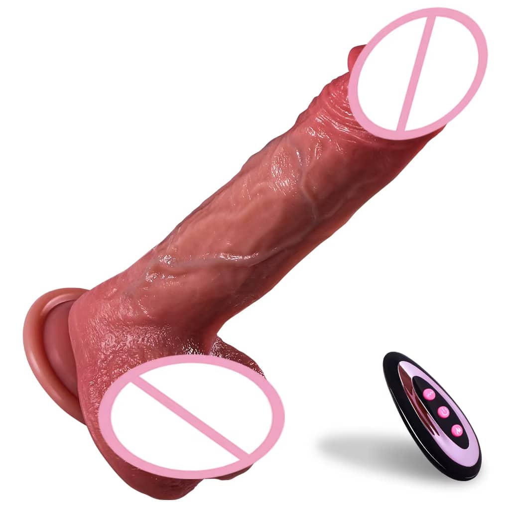 Remote Control Realistic Dildo Combines telescopic thrusting, swinging, vibration, and heating in one device