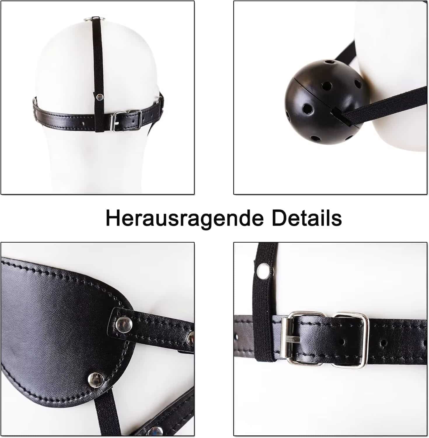 - 🖤 3-in-1 Bondage Kit – Includes leather harness belt, open mouth gag ball, and blindfold mask.