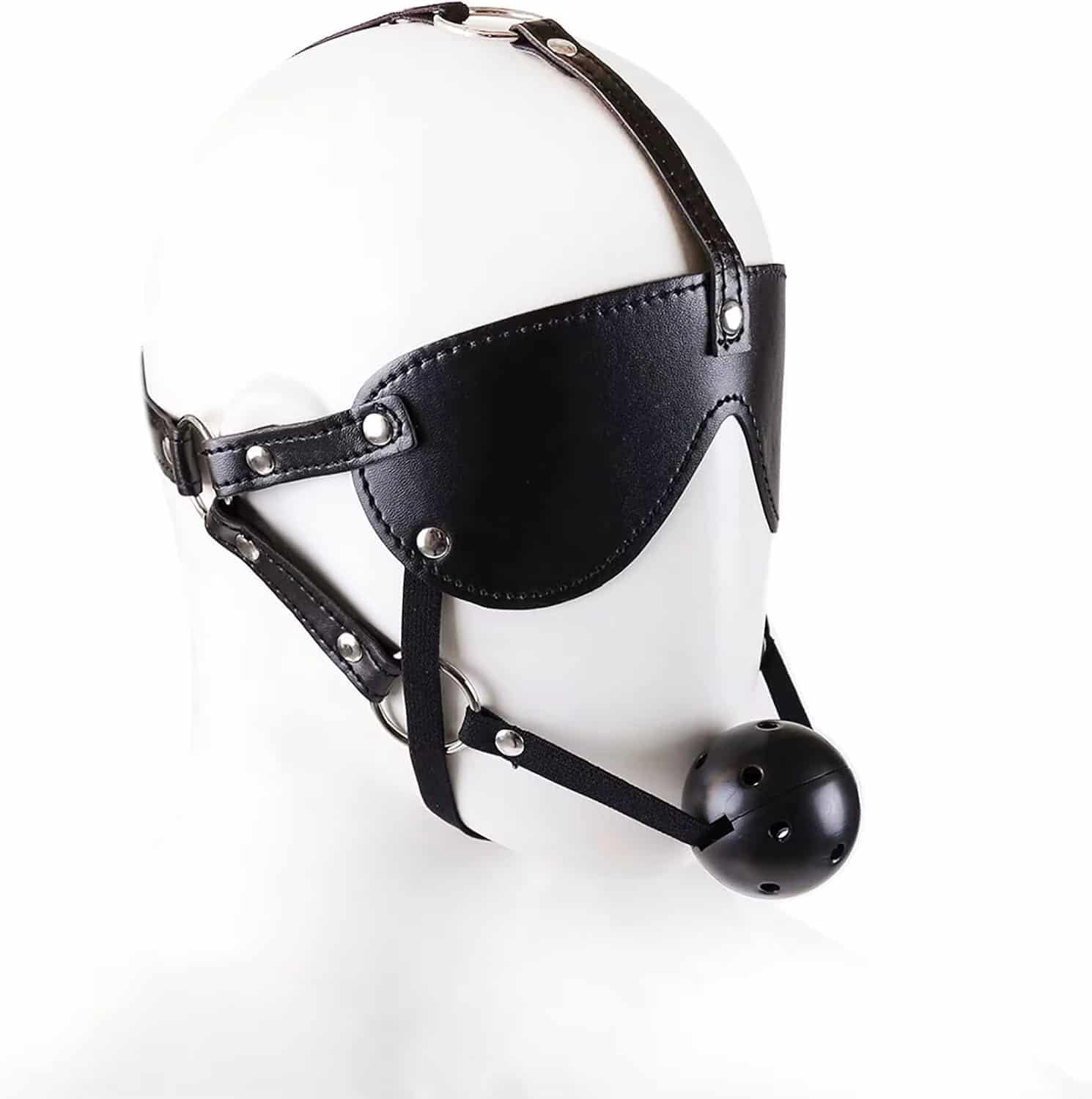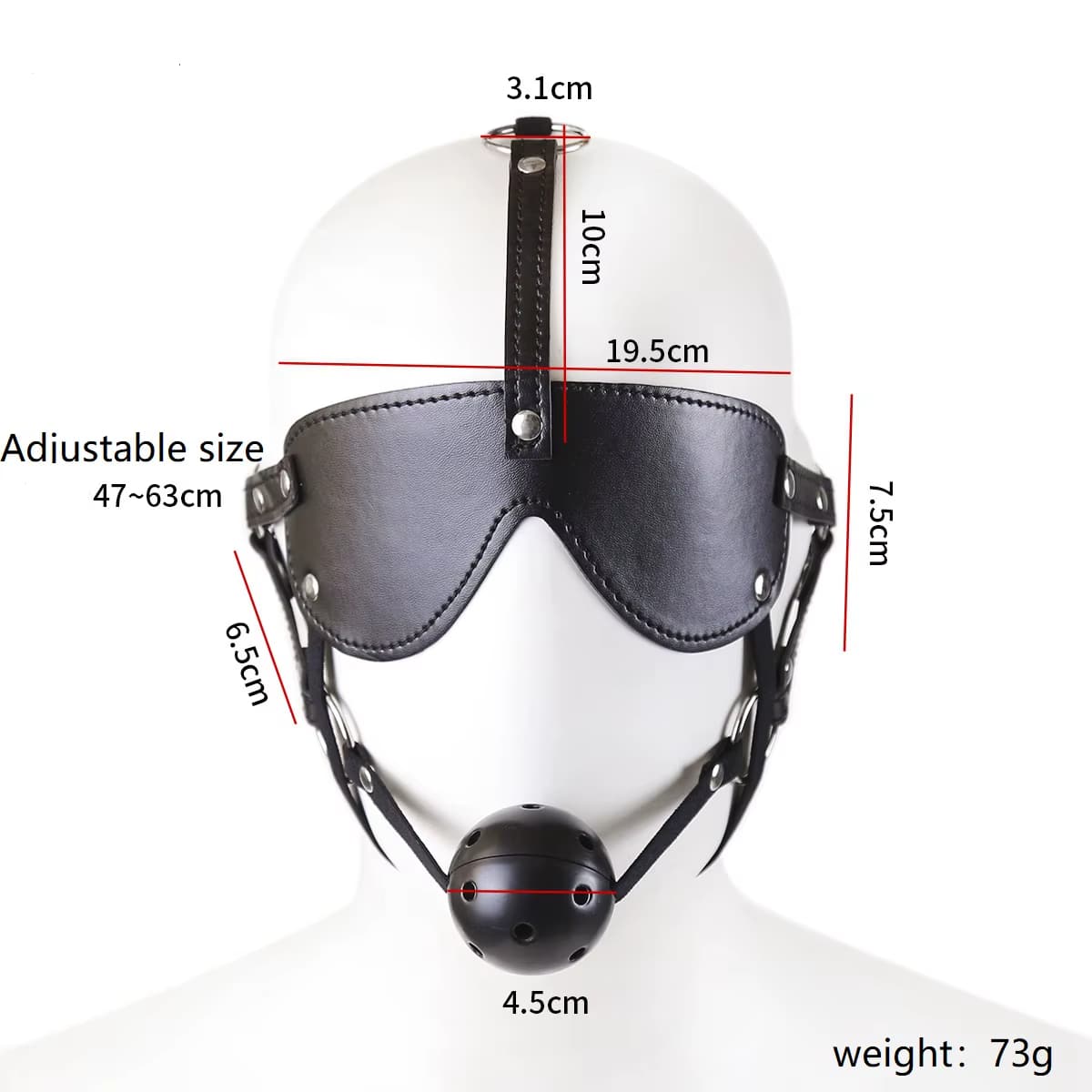 🖤 Leather Harness Belt Blindfold Eye Mask with Open Mouth Gag Ball – BDSM Toys & Bondage Gear for Couples