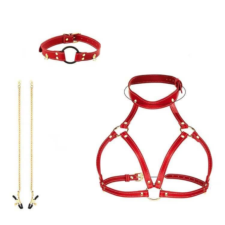 All-in-One Fetish Set – Includes nipple clamps, chest harness, and neck collar for a complete bondage experience