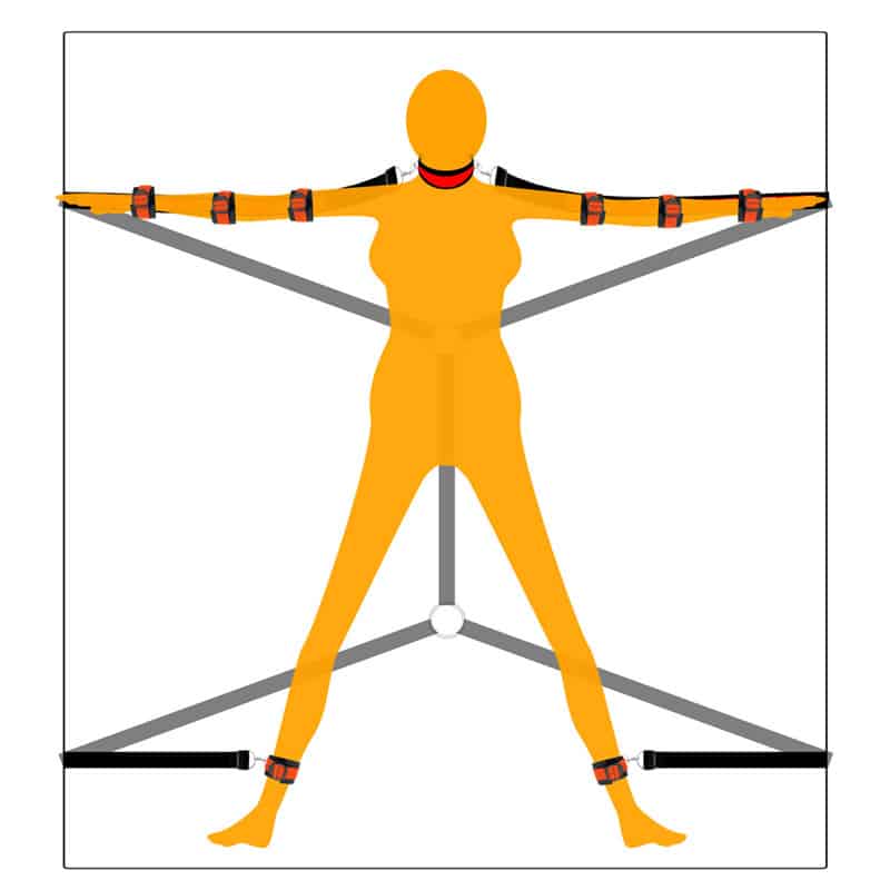 Experience thrilling restraint and passionate control with the One-Piece Arm Joints Restraint, a versatile BDSM bondage set designed for full-body restriction and intimate play. This all-in-one strap system connects the wrists and ankles together, creating exciting submissive positions for ultimate pleasure and trust between partners.