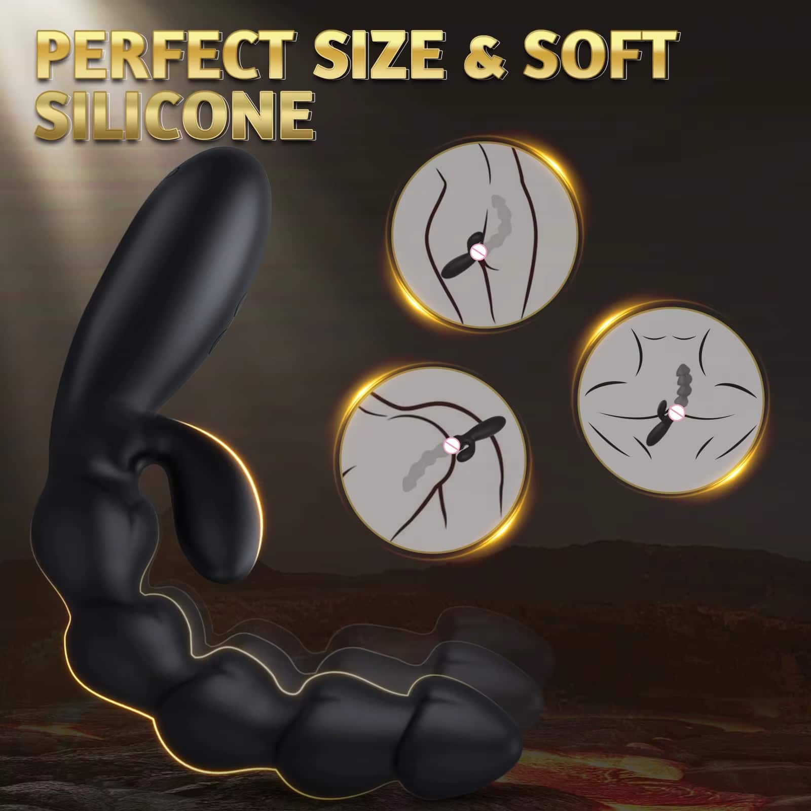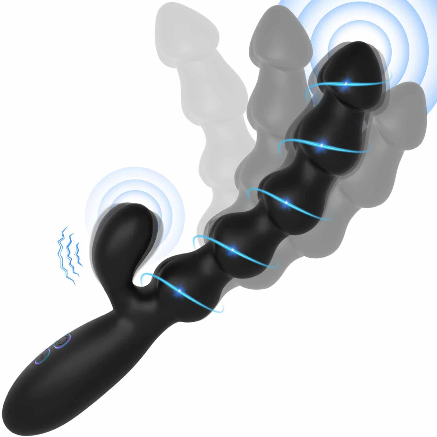 Combines glans dildo, rabbit stimulator & anal beads in one device