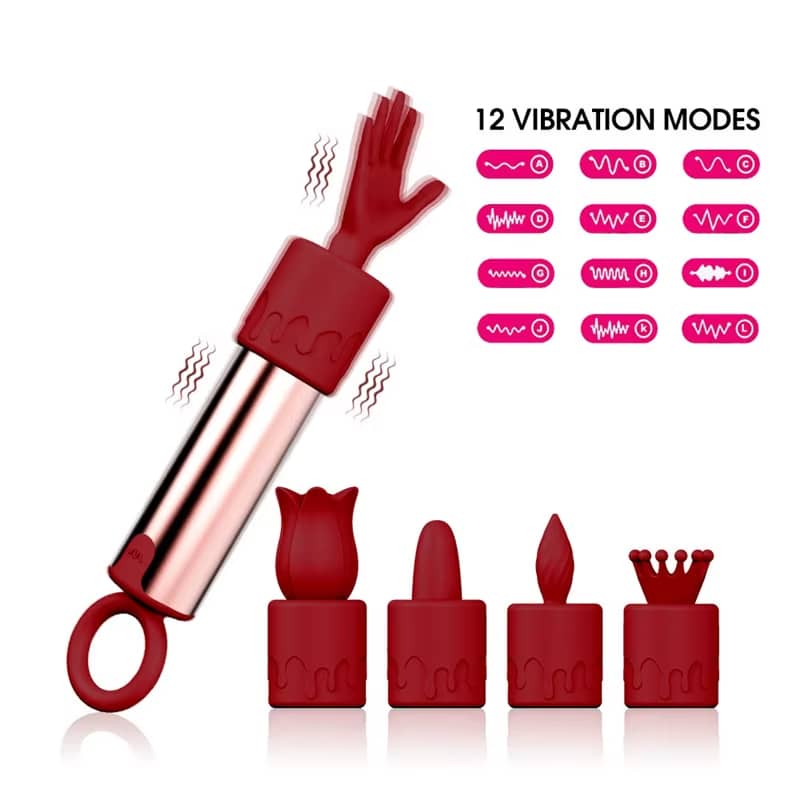 12 Modes Rose Cover Multi-Head Vibrator – 5-in-1 Bullet Vibrator Lipstick-Style Toy for Women