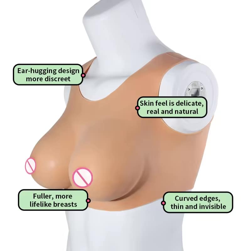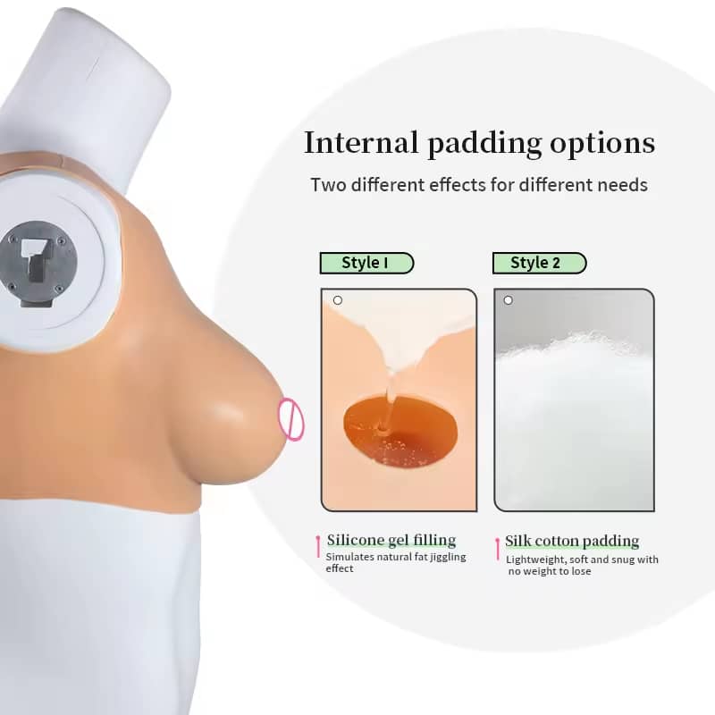 The short, round-neck design ensures easy wear under clothing while maintaining a natural silhouette. Ideal for daily wear, cosplay, stage performance, photography, or personal transformation, this false breast form is durable, washable, and comfortable for extended use. OEM/ODM customization is available for size, color, packaging, and branding, perfect for wholesale or personal orders.