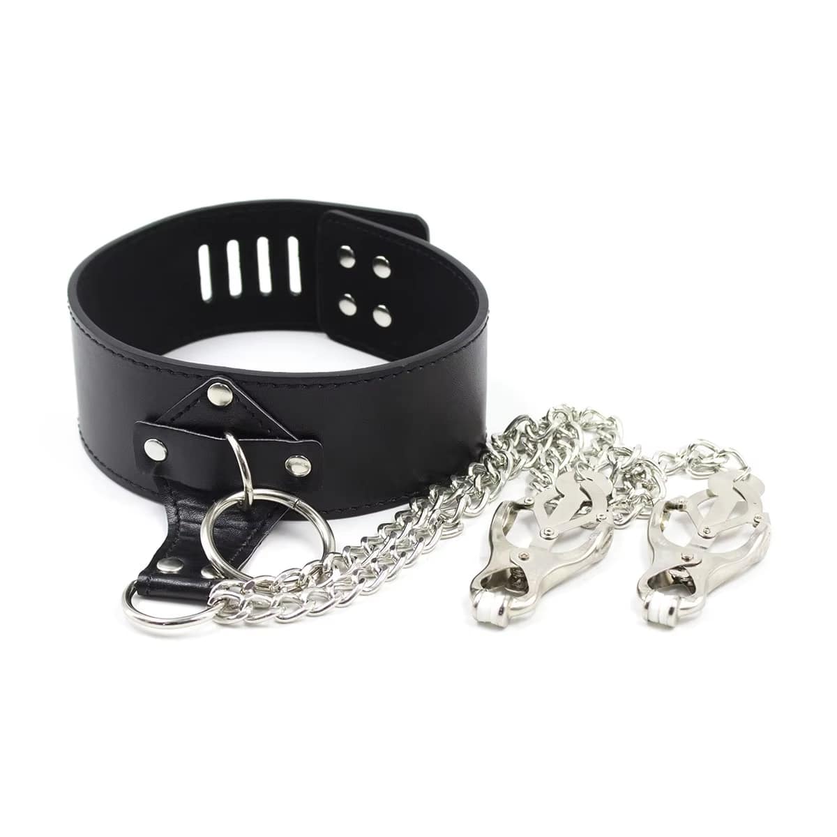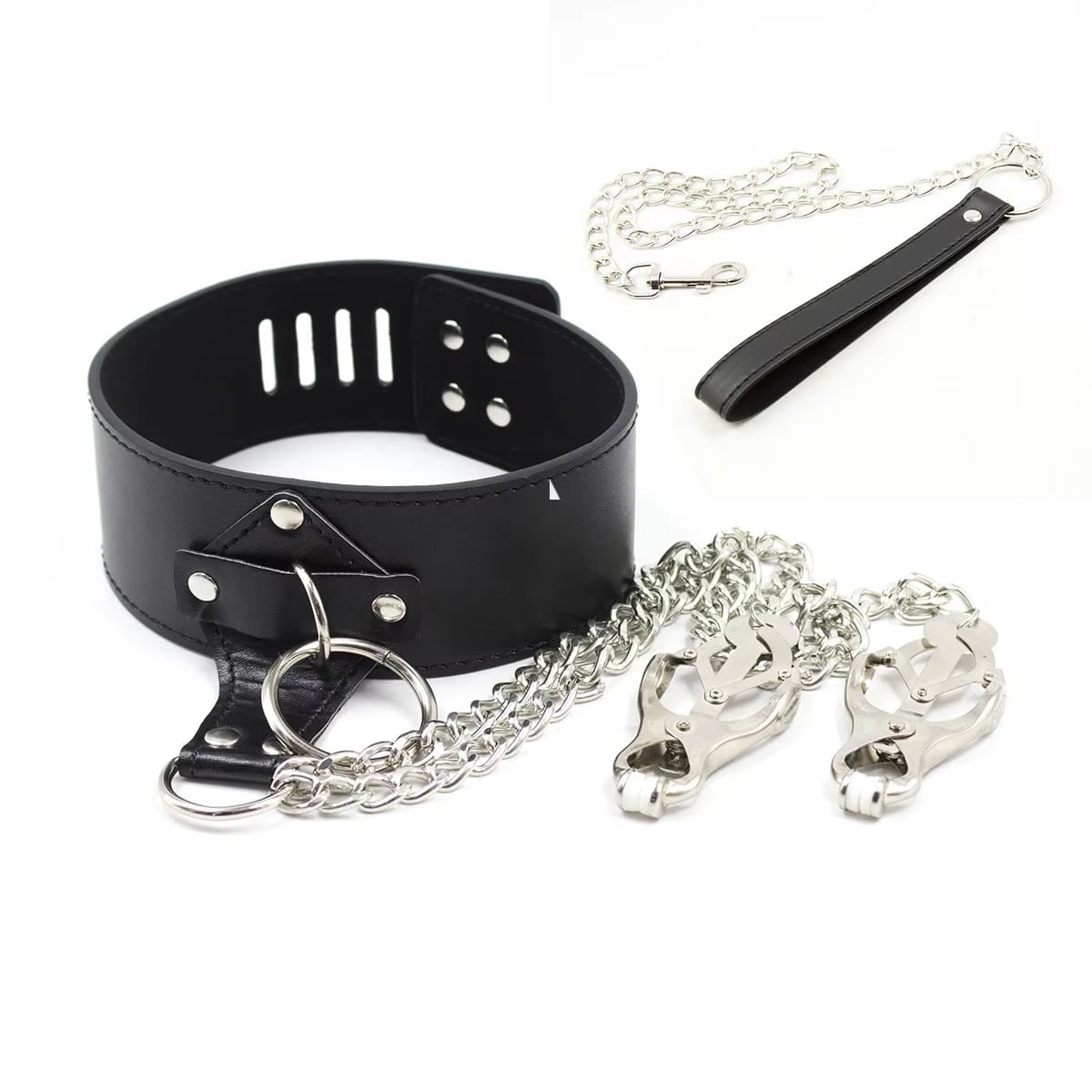 - 💋 Elegant BDSM Collar Set – Combines leash, nipple clamps, and bondage strap for versatile play.
