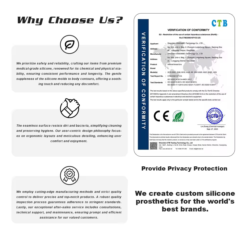The one-piece design ensures full coverage and smooth contours, enhancing comfort and fit under clothing. With a weight range of 500–2100g, these silicone breast forms cater to various preferences, from subtle enhancement to dramatic volume. OEM/ODM customization is available for size, color, logo, and packaging, making it perfect for wholesale or personal use.