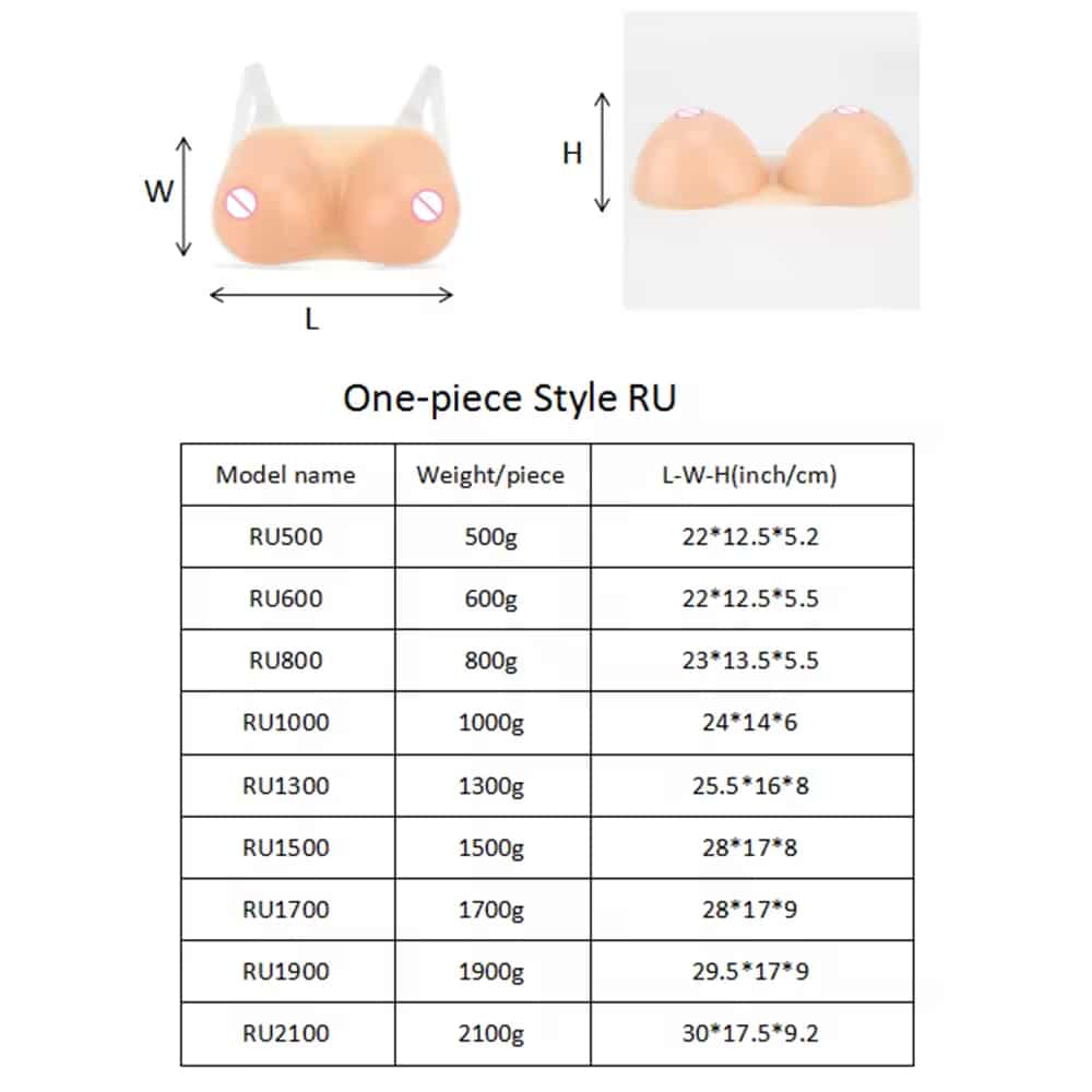 Each piece features a natural teardrop contour, ensuring a smooth, feminine silhouette under clothing. Available in multiple weight options from 500g to 2100g, users can choose the size that best fits their desired look and body type.