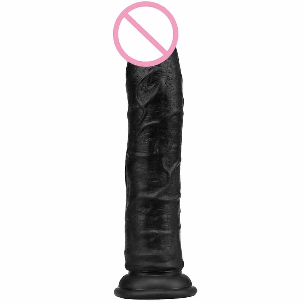 Soft Realistic Dildo with Suction Cup – Jelly Black Rubber Adult Erotic Sex Toy for Women & Men Masturbation