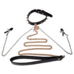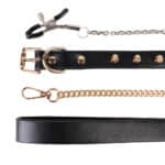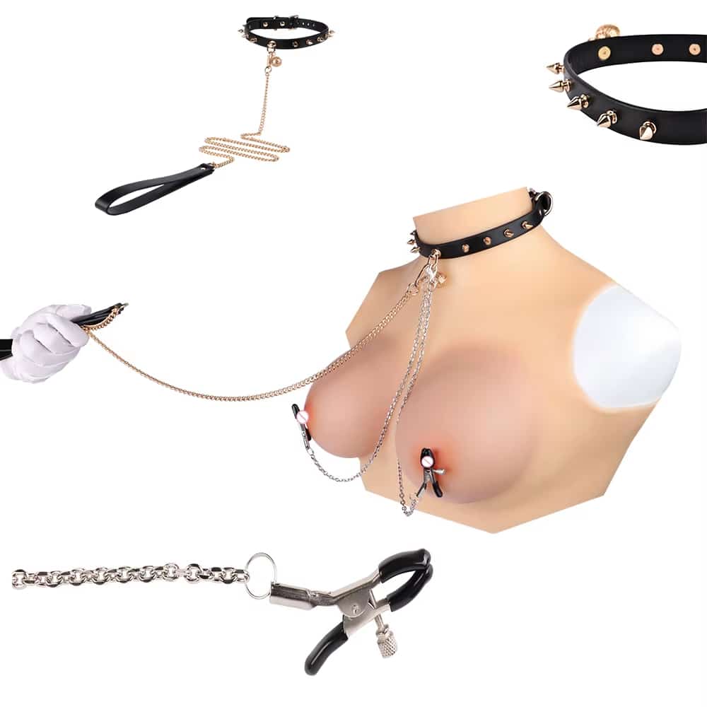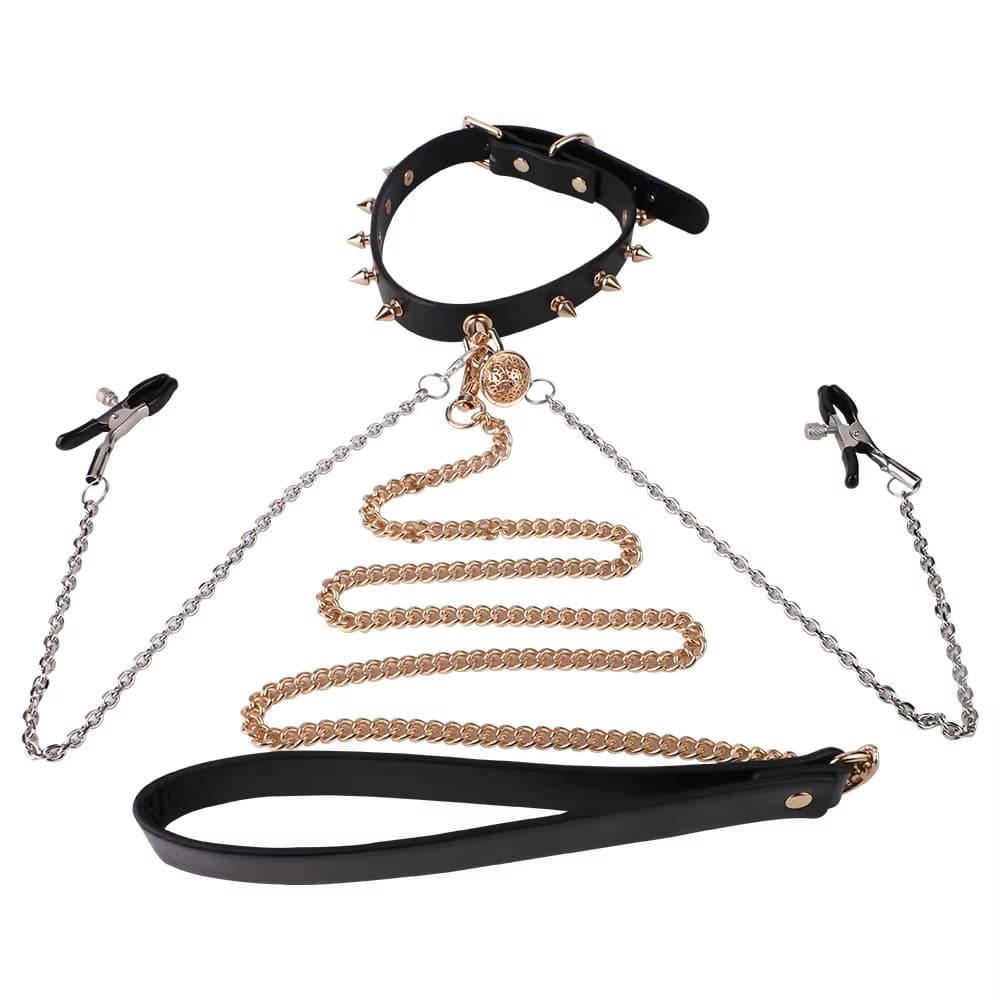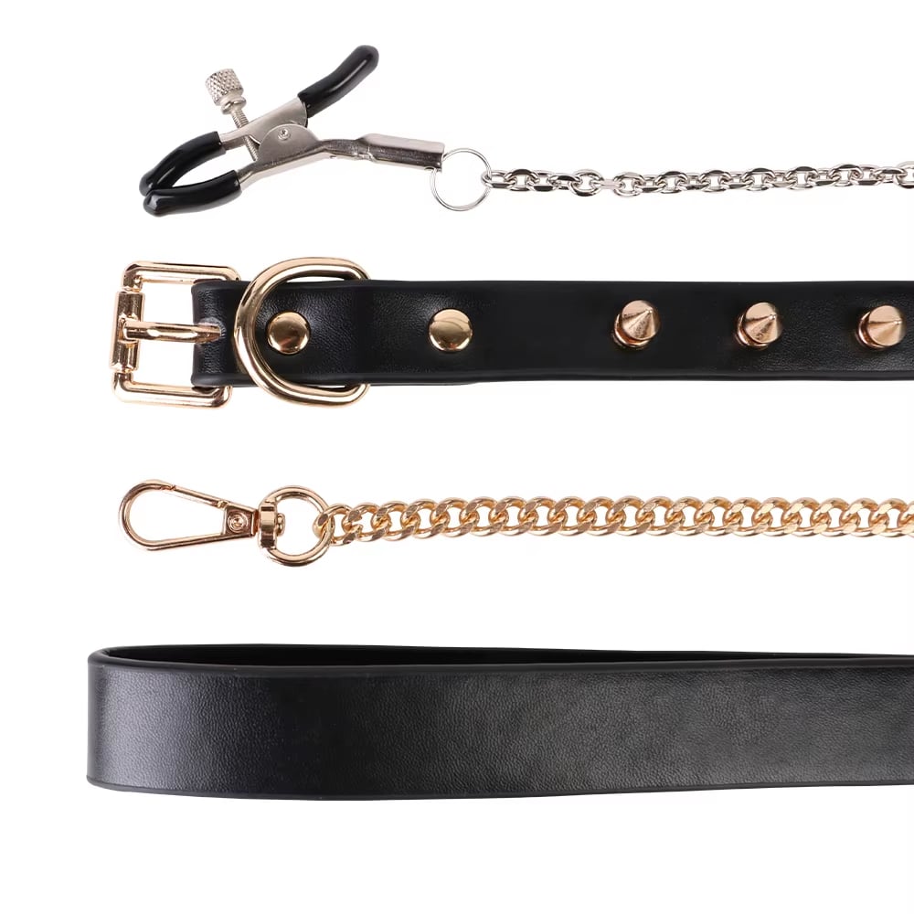 Complete Bondage Set – Includes stainless steel nipple clamps, collar, and leash