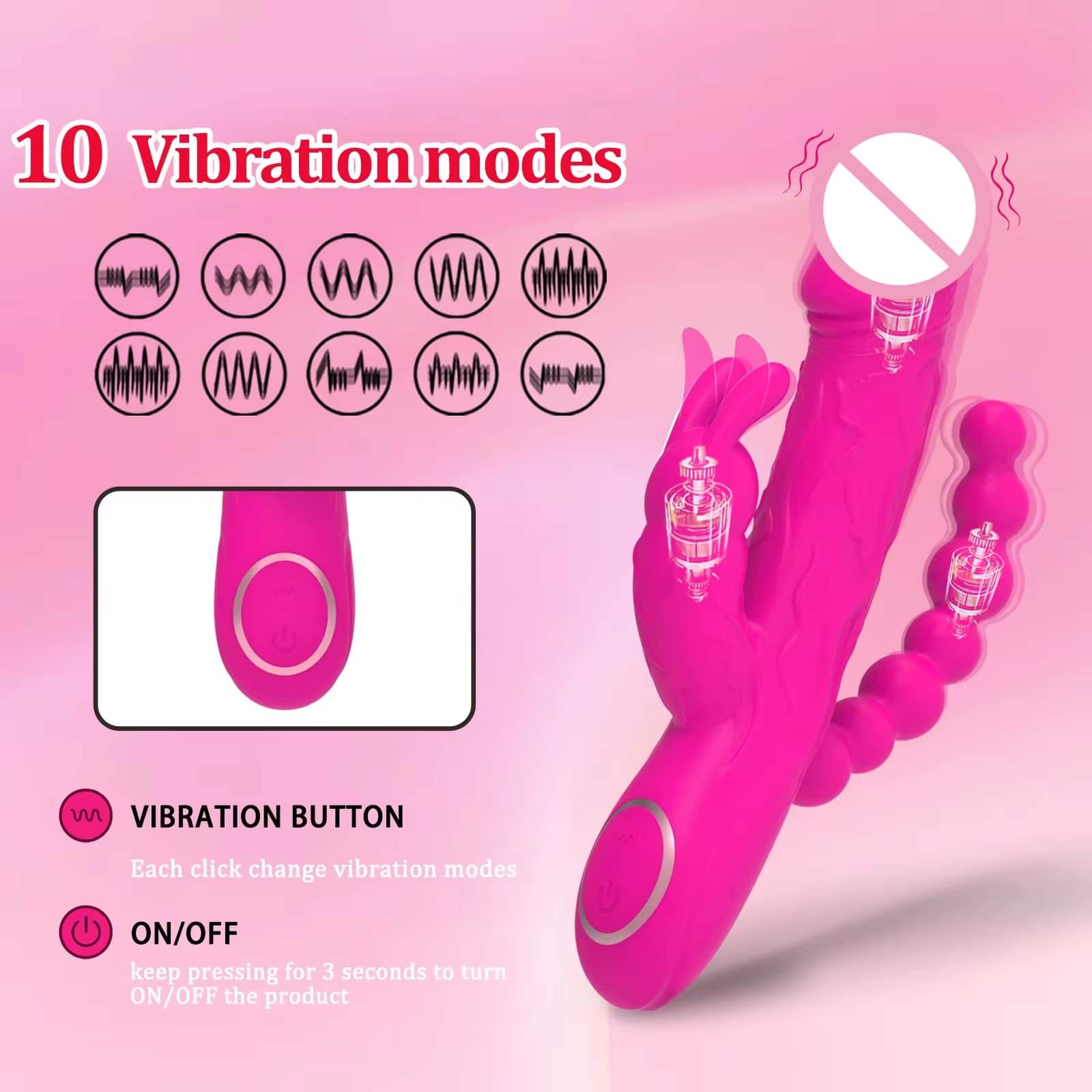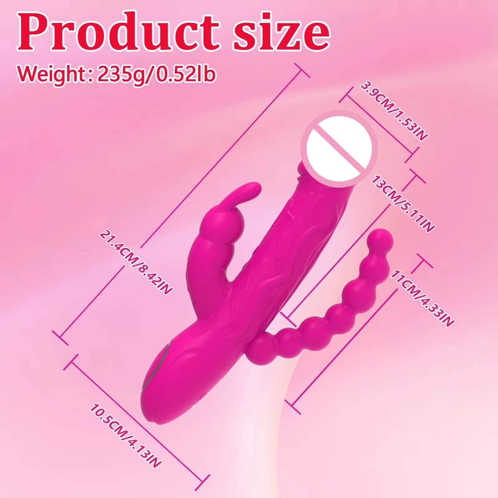 | Design | 3-in-1 rabbit vibrator with anal extension |